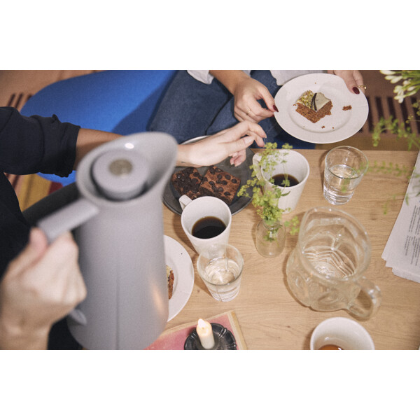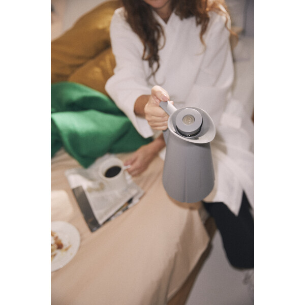 Die preisgekrönte Thermoskanne von Grand Cru ist jetzt in dieser eleganten dimmgrauen Variante erhältlich, die gut zum industriellen Stil passt, der der aktuelle Einrichtungstrend für Zuhause und Tisch ist. Die praktische Druckknopffunktion ist so gestaltet, dass die Kanne die Wärme länger hält, da Sie den Deckel nicht öffnen müssen, wenn Sie einschenken, und somit das Eindringen von kalter Luft vermeiden. Eine gute Geschenkidee zusammen mit einer Tüte guter Kaffeebohnen.Die Thermoskanne aus hochglanzpoliertem Stahl in Luxusausführung ist die Jubiläumsthermoskanne von Grand Cru mit praktischer Druckknopffunktion, die das Ausgießen erleichtert. Sie tropft nicht und hält die Temperatur gut. Eine gute Geschenkidee für einen besonderen Anlass – oder für Sie, die durchdachtes dänisches Design schätzen.Größe: Durchmesser: 17 cm, Höhe: 28,4 cm, Breite: 14,9 cm, Tiefe: 17,1 cm