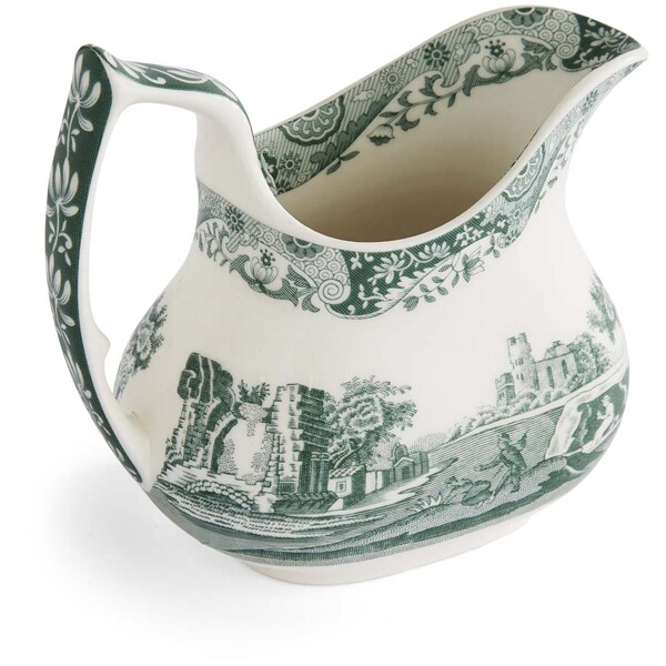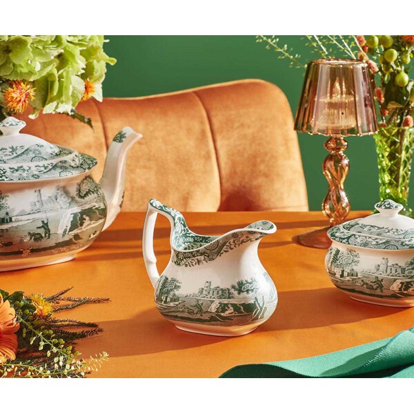 Heritage Green Italian Sahnekännchen 0,22 L kombiniert praktische Funktion mit klassischer Eleganz. Es trägt das ikonische Muster von Spode – bekannt vom Blue Italian – jedoch in einem tiefen, neuen Grünton, der sowohl auf dem Frühstückstisch als auch beim Dessertservieren einen raffinierten Ausdruck verleiht.Inspiriert von der malerischen italienischen Landschaft, eingerahmt von einem Imari-Oriental-Muster aus dem 18. Jahrhundert, wird das Kännchen zu einer natürlichen Ergänzung von Tasse, Untertasse und anderen Teilen der Serie. Die sanft gerundete Form und der bequeme Griff machen das Servieren einfach, während das Muster das gesamte Gedeck aufwertet.Hergestellt in Stoke-on-Trent, England – ein Erbe von Handwerkskunst, Geschichte und echter britischer Porzellankultur.