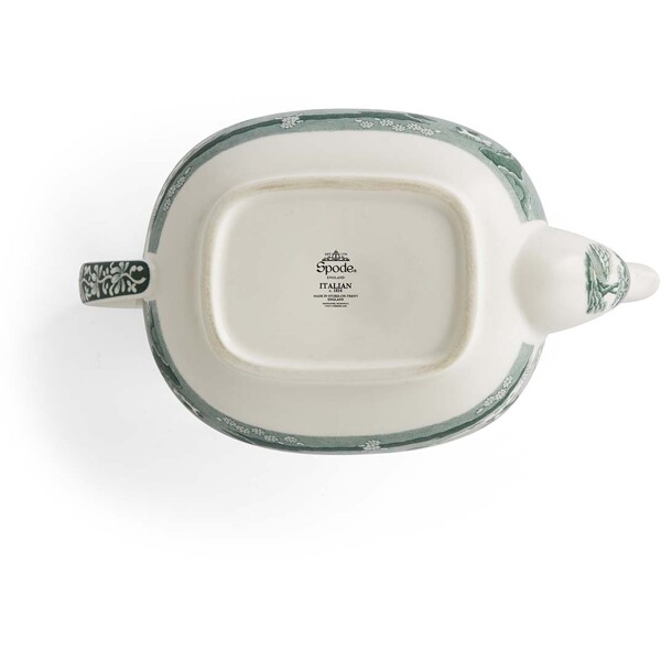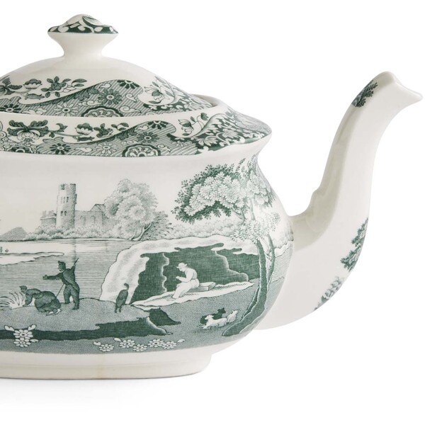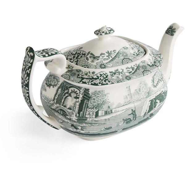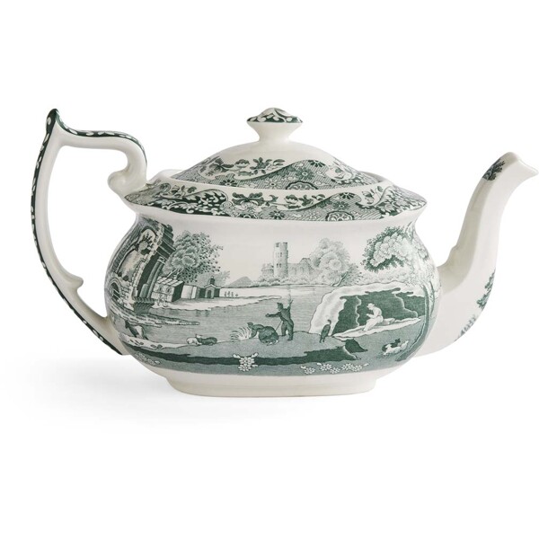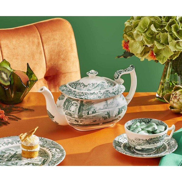 Heritage Green Italian Teekanne 1,1 L ist ein eleganter und funktionaler Mittelpunkt in jedem klassischen Teeservice. Das Muster – bekannt von Spodes ikonischem Blue Italian – wurde hier in einem tiefen, grünen Farbton wiedergegeben, der einem geliebten Original einen neuen Ausdruck verleiht.Das Motiv zeigt die malerische italienische Landschaft, eingerahmt von dem detailreichen Imari-Oriental-Muster aus dem 18. Jahrhundert, das entlang der schön gewölbten Form der Teekanne verläuft. Das großzügige Volumen der Kanne von 1,1 Litern macht sie perfekt für sowohl alltäglichen Nachmittagstee als auch festlichere Anlässe. Der gut ausbalancierte Ausguss und der Deckel mit Knauf gewährleisten ein sicheres und tropffreies Servieren.Hergestellt in Stoke-on-Trent, England – wo Generationen von Handwerkern seit dem 18. Jahrhundert britisches Porzellan veredeln.