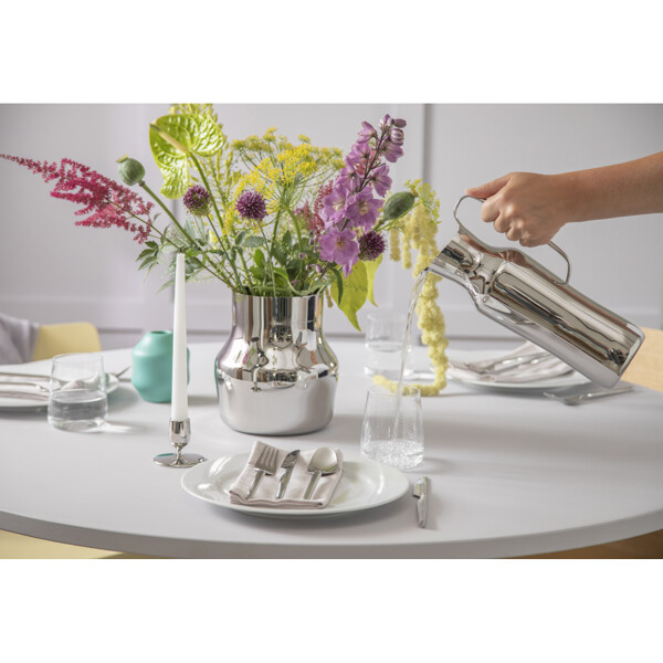 Dorotea wird aus 91 % recyceltem Edelstahl hergestellt. Das bedeutet, dass der Edelstahl, wie man so schön sagt, ein früheres Leben hatte. Abgesehen davon, dass es extrem langlebig ist, kann Edelstahl eingeschmolzen und in neue Produkte umgewandelt werden, ohne seine Eigenschaften und Qualitäten zu verlieren. Edelstahl kann unendlich oft wiederverwendet werden und ist daher ein Material, das immer weitergibt.