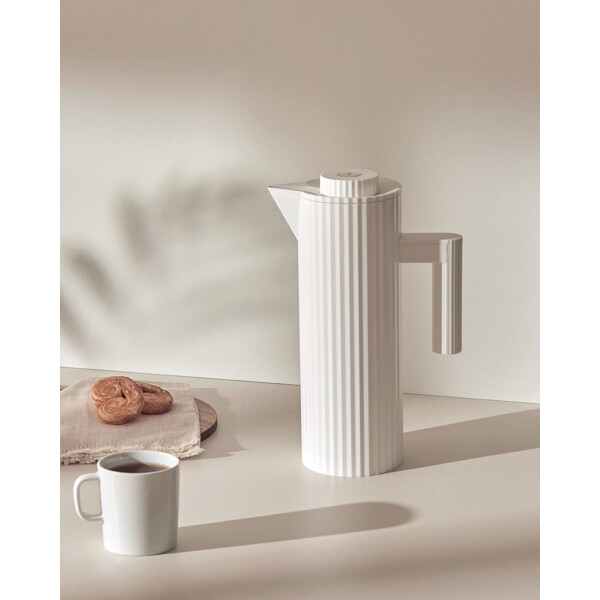 Eine raffinierte Drapierung ziert diese thermoisolierende Kanne, entworfen von Michele De Lucchi. Die Plissé thermoisolierende Kanne ist einfach zu bedienen und verbirgt nicht ihre ikonische und zeitlose Form. Der innere Behälter ist spülmaschinenfest.