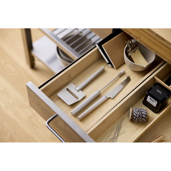 Das Käsemesser ist für sehr weiche und sehr harte Käsesorten geeignet. Die scharfe Schneide reicht bis zur Spitze für präzisere Schnitte, und die charakteristische Gabelspitze wird verwendet, um das Käsestück zu transportieren. Der Käseschneider mit der klassischen Saite ist mit einem Fokus auf Details gestaltet. Der obere Teil formt sich mit der kleinen Gabel, die die Käsescheibe auffängt. Die soliden Materialien, Kunststoff und Edelstahl, ergänzen sich auf schöne Weise und verleihen den Werkzeugen ein Gewicht, das eine gute Balance in der Hand schafft. Der Edelstahl ist von hoher Qualität, was sowohl Schärfe als auch einfache Reinigung garantiert. Die Werkzeuge sind in einer Reihe schöner Farben erhältlich, die sie zu einem Favoriten in der Küche und auf dem Esstisch machen. 5 Jahre Garantie. Emma ist eine Serie eleganter und funktionaler Küchenwerkzeuge von hoher Qualität. Schöne und praktische Küchenwerkzeuge aus soliden Qualitätsmaterialien, die langlebig und haltbar sind. Die Griffe aller Emma-Werkzeuge folgen einem einfachen Designprinzip, das Ästhetik und Funktionalität vereint. Mit ihrem einfachen, nordischen Design vereint der Griff in all seiner Schlichtheit die Werkzeuge der Serie, und sie werden Ihre erste Wahl – jedes Mal!