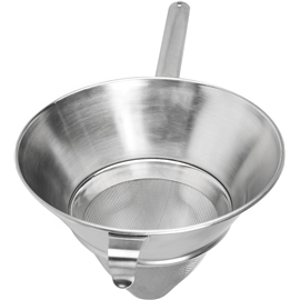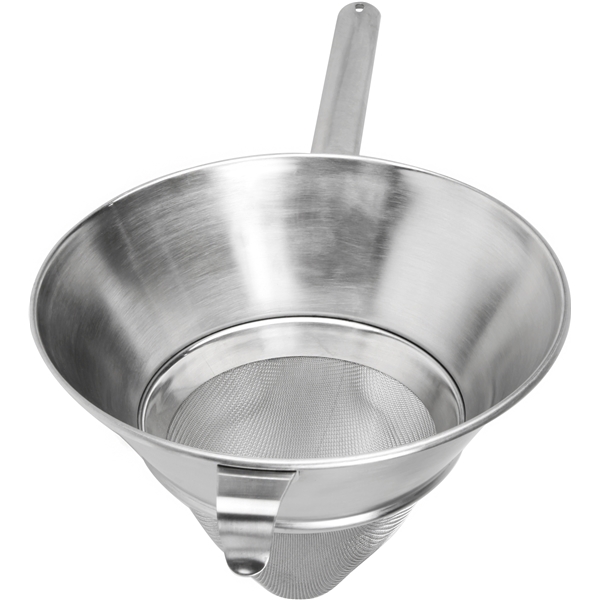 Chinoissieb von Exxent, entwickelt für die professionelle Küche, aber passend für jede Küchenumgebung. Ein strapazierfähiges Sieb aus rostfreiem 18/10 Stahl mit robustem Griff und feinem Netz. Perfekt zum Passieren von Saucen.