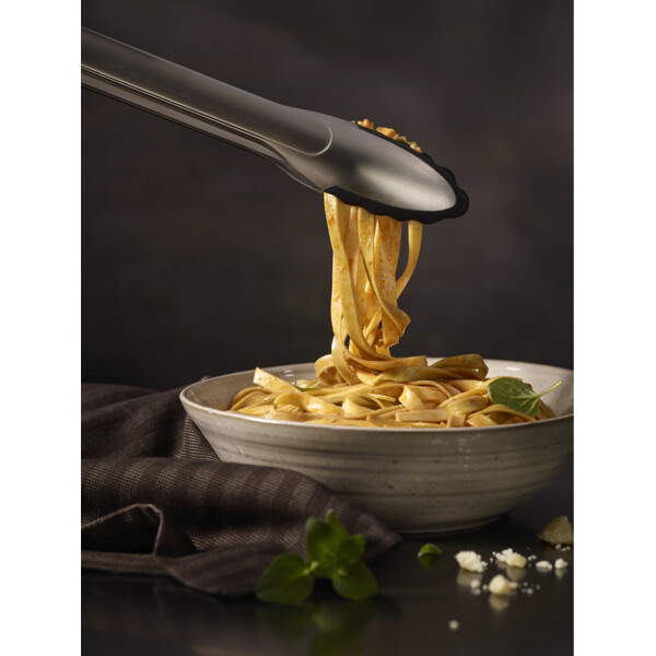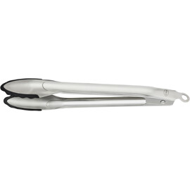 RÖSLE Küchenzange mit patentiertem Öffnungsmechanismus, der es ermöglicht, die Zange mit nur einer Hand zu öffnen und zu verriegeln. Die Silikonbeschichtung verhindert Kratzer in Kochgeschirr mit Beschichtung oder aus Edelstahl. Hitzebeständig bis zu 260°C. Spülmaschinenfest.