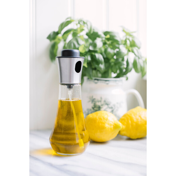 Die Orna Öl- & Essigflasche verfügt über eine praktische Sprühfunktion, die es einfach macht, Öl über den Salat oder in die Pfanne zu sprühen. Auf diese Weise wird das Öl gleichmäßig verteilt, ohne zu kleckern.