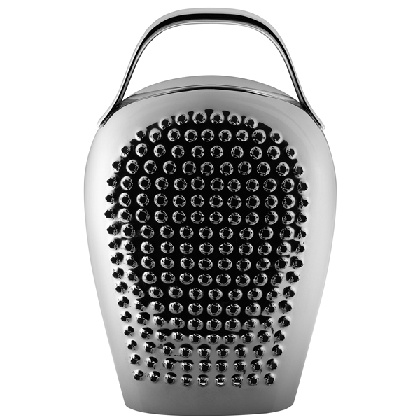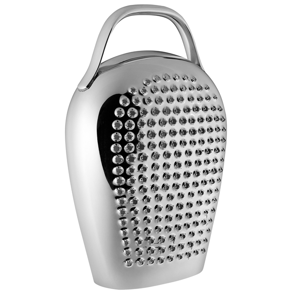 Design: Gabriele Chiave, Lorenza BozzoliKäsereibe aus 18/10 Edelstahl, spiegelpoliert. Ein Objekt, das ein Wortspiel ist, die Kuhglocke heißt "Käse, bitte" und wurde von Lorenza Bozzoli und Gabriele Chiave entworfen. Ihre auffällige und anregende Kuhglockenform erweist sich auch als die beste Möglichkeit, ihren funktionalen Aspekt zu interpretieren. "Käse, bitte" hat kreisförmige Löcher, die von kleinen Zähnen umgeben sind. Diese Art von Löchern reibt den Käse, ein Prozess, der besonders für gereifte Sorten wie Parmesan oder Pecorino geeignet ist.