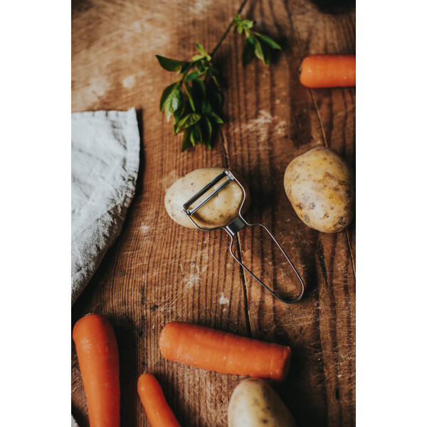 Klassischer und langlebiger Kartoffelschäler, der das Schälen von Kartoffeln, Gemüse und Obst erleichtert. Die scharfe Klinge sorgt für ein müheloses Ergebnis und der ergonomische Griff bietet einen guten Halt. Ein unverzichtbares Küchenutensil.