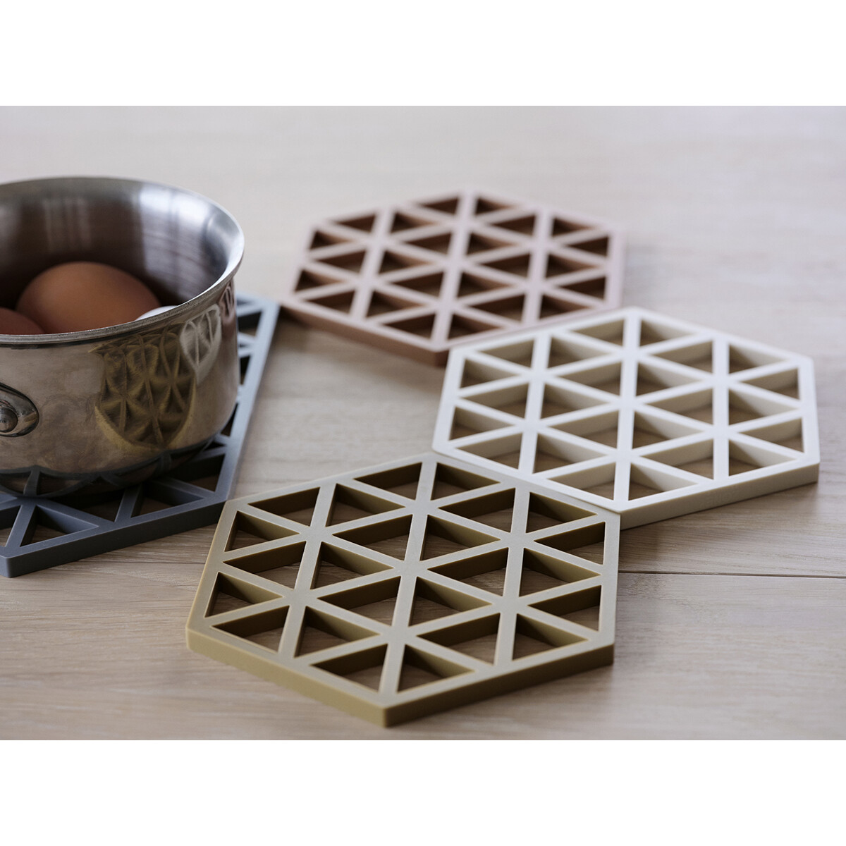 Die Serie wurde von dem Designertrio VE2 entworfen. Triangles sind in vielen aufregenden Farben erhältlich und lassen sich perfekt mit den Hexagon-Topfuntersetzern kombinieren, die die gleichen Außenmaße haben.