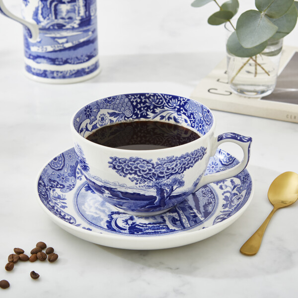 Blue Italian Jumbo Kaffeetasse mit Untertasse Spode