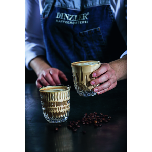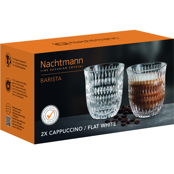 Diese elegante Kaffeetasse aus feinstem Kristallglas ist perfekt für Cappuccino, Flat White und andere milchbasierte Kaffeespezialitäten. Der leicht abgerundete Boden hilft, den Milchschaum zu zentrieren und zu stabilisieren, was die Struktur der Crema verbessert und schöne Latte Art hervorhebt.