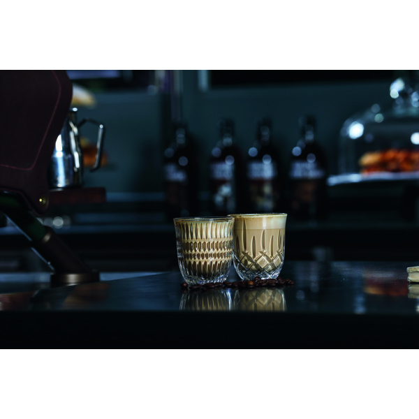 Hergestellt aus feinem Kristall, kombiniert diese Tasse klassische Form mit praktischer Funktion. Der abgerundete Boden hilft, den Milchschaum zu zentrieren und die Struktur der Crema zu bewahren – perfekt für Cappuccino, Flat White und Latte Art.