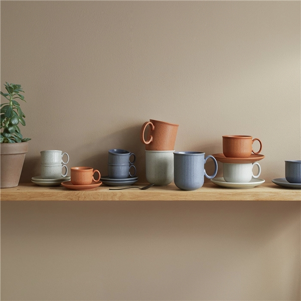 Thomas Clay Becher von Rosenthal ist ein Steinzeugbecher mit einem plissierten Muster, das von der Oberseite bis zum Fuß des Bechers verläuft und in mehreren Farben erhältlich ist. Der Becher eignet sich sowohl für den Morgenkaffee als auch als Teetasse. In der Serie gibt es verschiedene Teile, die zusammenpassen oder mit anderen Farben kombiniert werden können.