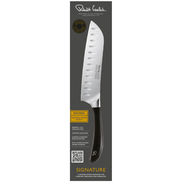 Alle Robert Welch Signature Messer werden in einer eleganten Geschenkverpackung geliefert, sind spülmaschinenfest und haben 25 Jahre Garantie.