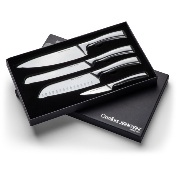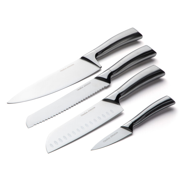 Ein sehr nützliches, robustes und exklusives Messerset mit vier Messern aus rostfreiem Stahl.