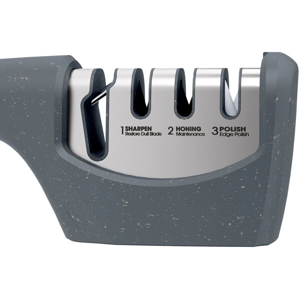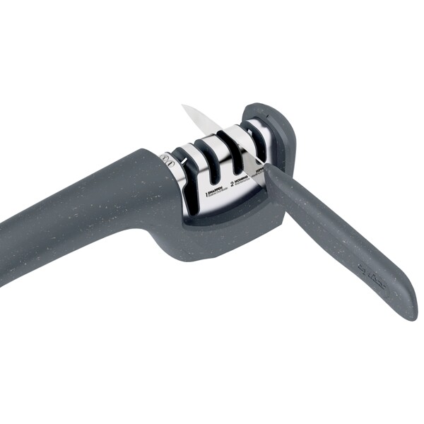 Erwecken Sie schnell stumpfe Klingen wieder zum Leben mit nur wenigen Zügen durch die verschiedenen speziellen Schleifschlitze. Mit 4 verschiedenen Schlitzen: 1. für Scheren und gezahnte Klingen, 2. Schleifen, 3. für das Abziehen und 4. zum Polieren von geraden Klingen.