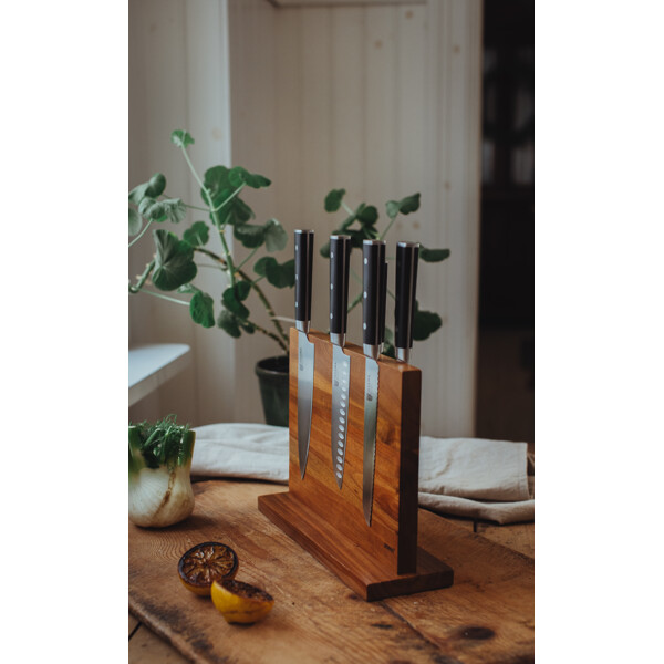 Dieser elegante Messerblock hält Ihre Lieblingsmesser stets griffbereit und schützt gleichzeitig sowohl die Schärfe als auch die Qualität. Dank starker Magnete auf beiden Seiten können Sie Messer auf beiden Seiten des Blocks platzieren – praktisch, elegant und perfekt für die moderne Küche.