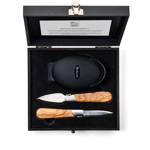 Dieses Austern-Wenge-Geschenkset mit Silikonhalter macht das Öffnen von Austern wirklich kinderleicht! Dieses Set besteht aus 2 Austernmessern und einem Silikonhalter, um sie an Ort und Stelle zu halten. Wenn Sie dieses Set auf einer Party oder einem Abendessen präsentieren, werden Sie Ihre Gäste sicherlich beeindrucken!
