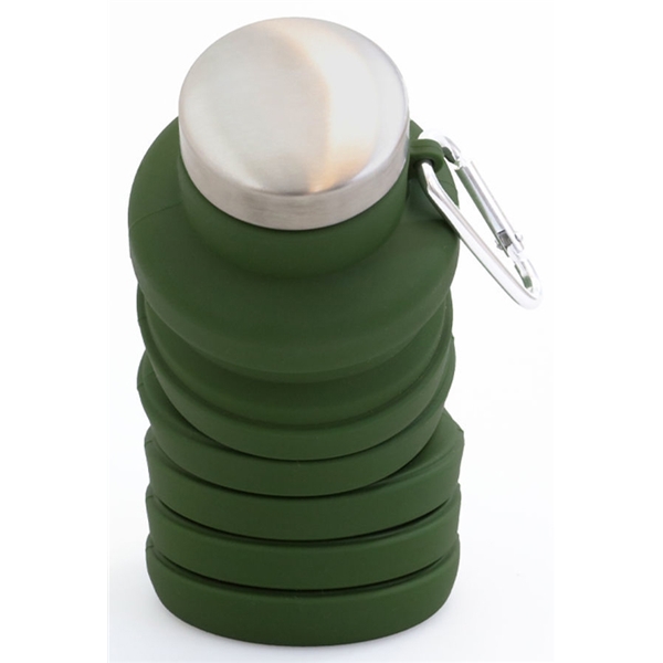 Silikonflasche von Orrefors Hunting, die du leicht zusammendrücken und auseinanderziehen kannst, um sie größer oder kleiner zu machen. Oben befindet sich ein Karabinerhaken, um sie beispielsweise am Rucksack zu befestigen. Ein perfektes Outdoor-Produkt, um das Gepäck zu minimieren. Die Flasche ist in mehreren Farben erhältlich.