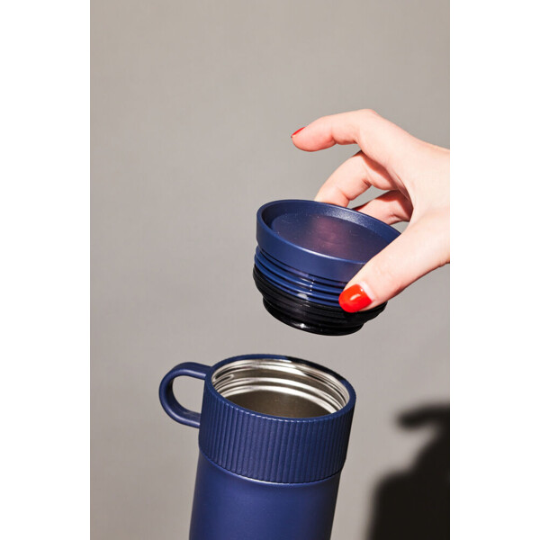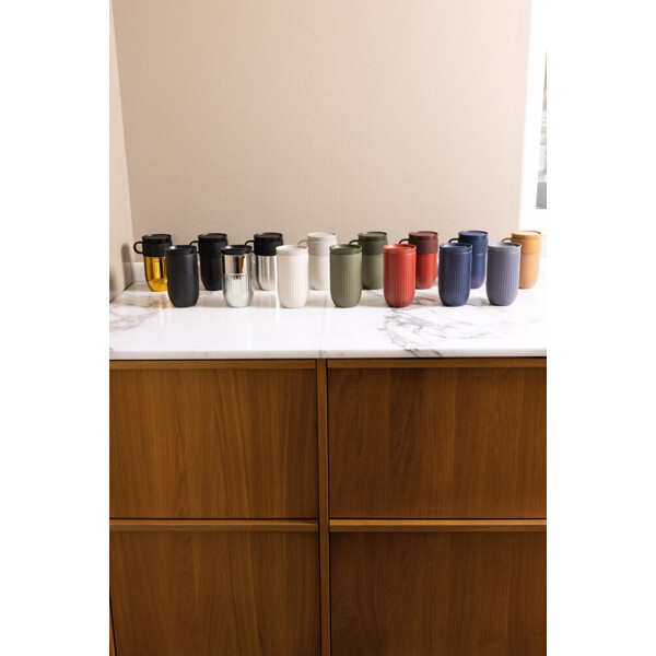 Der Ted-Reisebecher wird schnell zum Favoriten für alle, die gerne immer ein warmes oder kaltes Getränk zur Verfügung haben. Das Design aus recyceltem Edelstahl ist griffig mit einem praktischen Henkel und einer cleveren Druckfunktion am Deckel. Ted hat eine klare Formensprache und ist mit dem charakteristischen Sagarand-Muster versehen. Das doppelwandige, vakuumisolierte Design verfügt über eine hochwertige dünne Kupferschicht auf der Außenseite der Innenwand, die für eine bessere Isolierung sorgt, um die Temperatur zu halten. Das Trinken aus dem Becher in einem 360-Grad-Winkel, als ob es keinen Deckel gäbe, vermittelt das Gefühl, aus Ihrer Lieblingstasse zu trinken. Pulverbeschichtet. Spülmaschinenfest. Hält Wärme für 4 Stunden und Kälte für 8 Stunden. Fassungsvermögen: 28 cl. Design Studio Sagaform. Wird in einer klassischen Sagaform-Box geliefert.