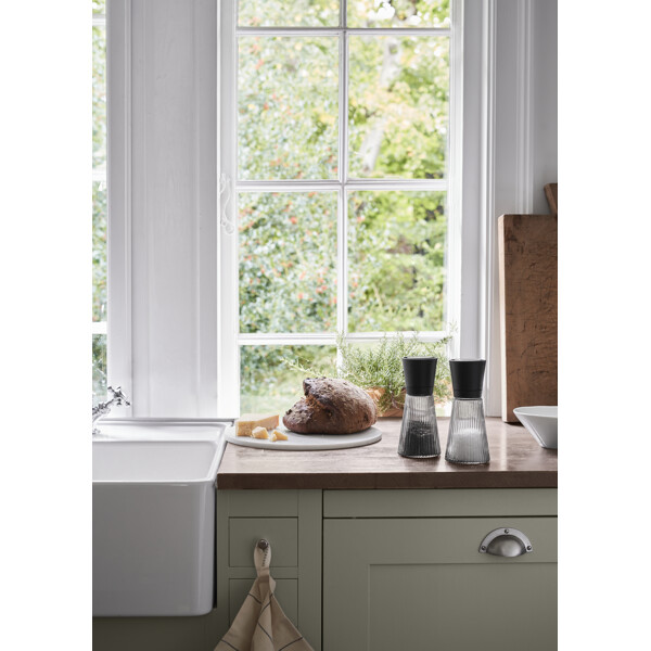 Mit der Grand Cru Nouveau-Mühle aus rauchfarbenem Glas erhalten Sie eine funktionale, moderne und elegante Neuinterpretation der ikonischen Grand Cru-Serie. Die vier ikonischen Grand Cru-Rillen sind nun zu 50 Rillen geworden, wobei die vielen Rillen ein lebendiges Aussehen und ein cleveres optisches Farbspiel erzeugen, wenn das Licht im Glas reflektiert wird. Neben ihrer dekorativen Funktion sind die Rillen auch funktional und bieten einen guten Griff für sowohl große als auch kleine Hände. Die Grand Cru Nouveau-Mühle ist 17 cm hoch und mit geometrischer Eleganz in Stil, Struktur und Farbe schafft das rauchfarbene Glas und der schwarze Deckel ein einzigartiges Aussehen, das das Grand Cru-Design hervorhebt.
