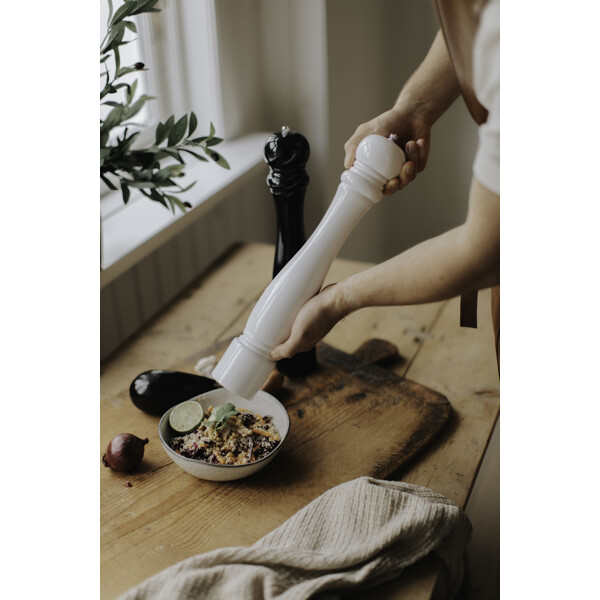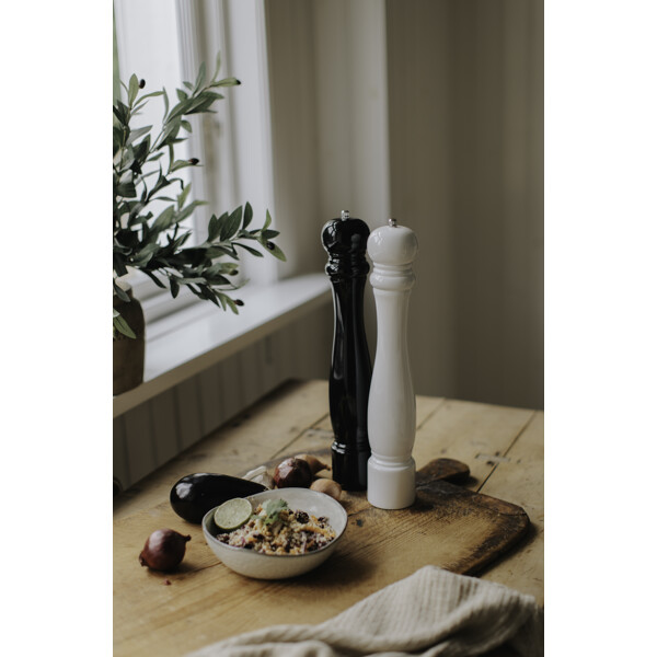 Eine größere schwarze Gewürzmühle für die Küche. Mahlen Sie Salz und schwarzen Pfeffer direkt in das Essen mit der Karou Pfeffer- und Salzmühle für ein Geschmackserlebnis der Extraklasse.