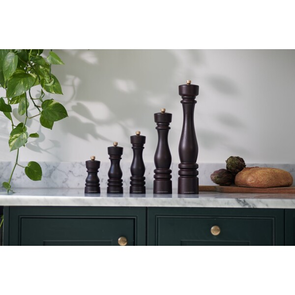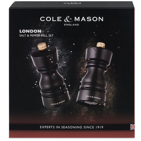 Die neue London-Mühle hat ihren Namen vom historischen Herzen der Stadt London, wo die Marke Cole and Mason bereits 1919 gegründet wurde. Wir haben eine Mühle geschaffen, die sowohl unser Erbe ehrt als auch in die Zukunft blickt, mit einer klassischen, aber dennoch modernen Ästhetik, die sich als elegante Ergänzung sowohl für traditionelle als auch moderne Küchen erweisen wird. Die Form der Mühle ist inspiriert von der schönen Art-déco- und britischen Industriearchitektur, die in der ganzen Stadt zu finden ist. Der Knopf an der Spitze der Mühle ist ein Hinweis auf den Stolz, den wir auf unser englisches Erbe haben. Die London-Mühlen sind in fünf Größen als Salzmühlen, Pfeffermühlen und Geschenksets erhältlich. Präzisionsmechanismus aus Kohlenstoffstahl. Die Salzmühlen sind alle mit unserem hochwertigen, rostfreien Keramikmechanismus ausgestattet.