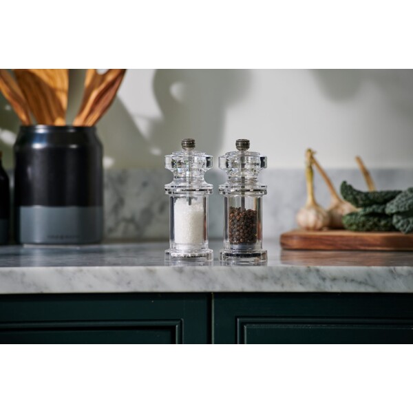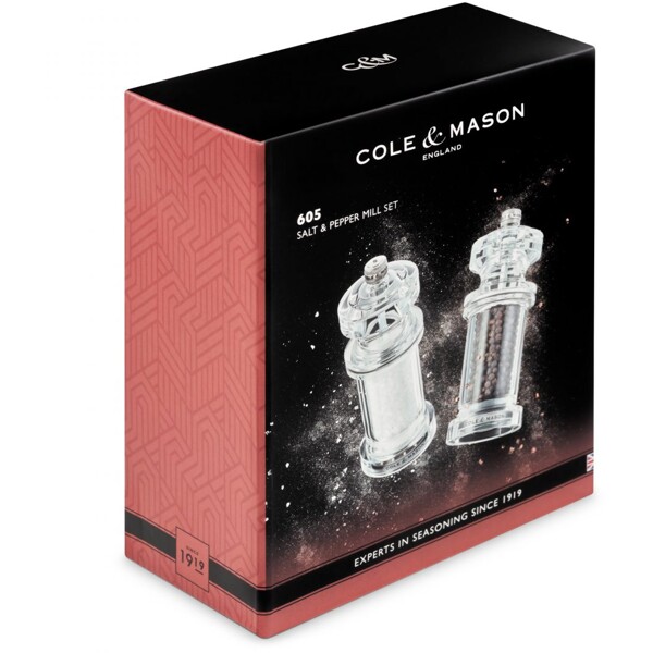 1975 brachte Cole and Mason die weltweit erste Acrylmühle auf den Markt, unsere ikonische 505. Erfunden von David Cowan, dem Sohn des Gründers Julian Cowan, hat sie sich als beliebter und zeitloser Klassiker erwiesen, den wir noch heute in unserem Sortiment führen. Die neuen 605- und 675-Mühlen lassen sich von ihren ikonischen Vorgängern inspirieren, während die abgeschrägten Kanten, der neue Knopf und die Ergänzung des Edelstahlkragens ein modernes und erstklassiges Gefühl vermitteln. Alle Pfeffermühlen sind mit dem Cole and Mason Precision Kohlenstoffstahlmechanismus ausgestattet und durch unsere lebenslange Garantie abgedeckt. Die Salzmühlen sind alle mit unserem hochwertigen, rostfreien Keramikmechanismus ausgestattet.