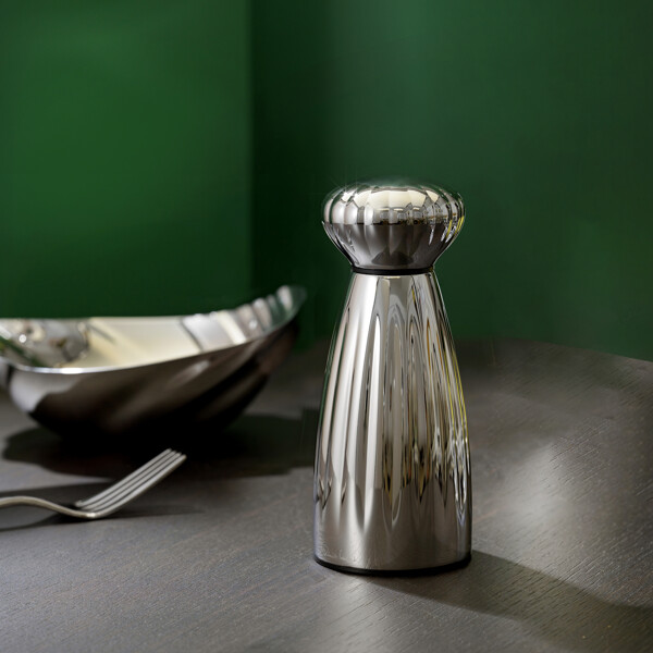 Palm Bright Pfeffermühle – Perfektion in Design und Funktion und eine elegante Kombination aus Stil und Qualität. Hergestellt aus hochwertigem 18/10 Edelstahl mit polierter Oberfläche, wird diese Pfeffermühle zu einem anspruchsvollen Detail sowohl auf der Küchenarbeitsplatte als auch auf dem Esstisch.