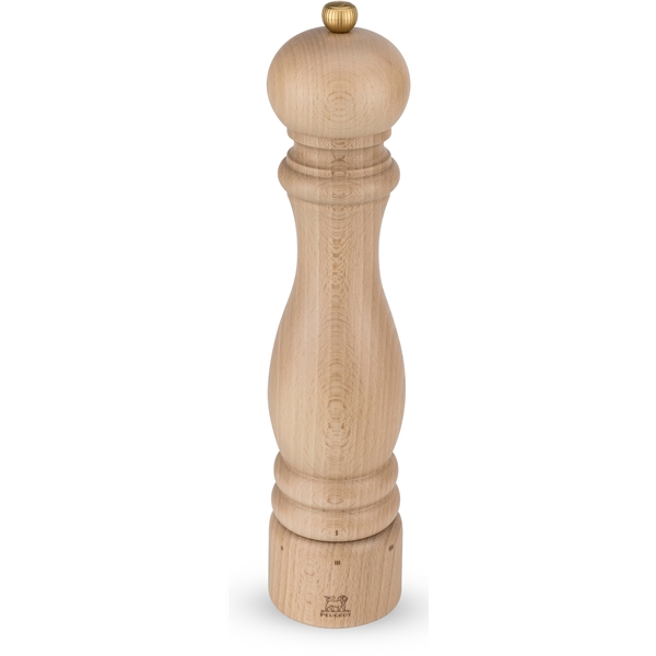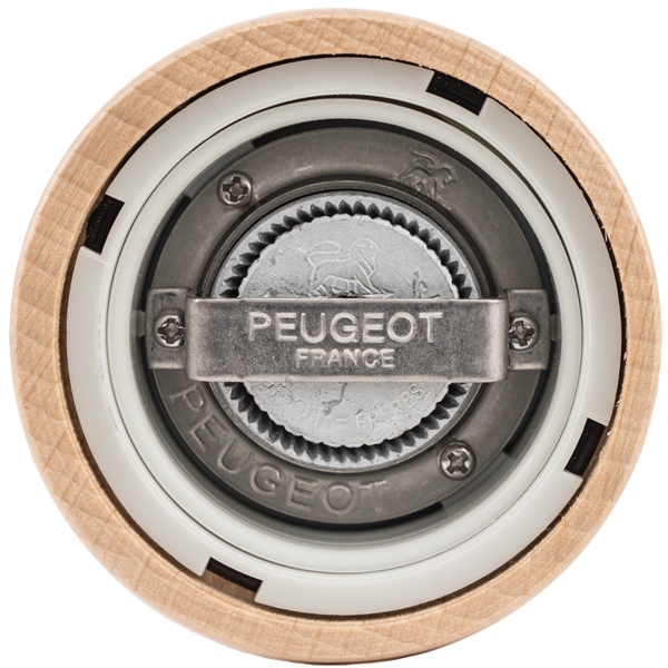 Design: Peugeot Das patentierte und rostgeschützte Mahlwerk der Pfeffermühle und das Mahlwerk der Salzmühle aus rostfreiem Stahl sind Präzisionswerke von höchster Qualität, beide mit lebenslanger Garantie. Alle Mühlen sind so gestaltet, dass sie sowohl zu Hause in der Küche oder auf dem Esstisch als auch in den Küchen und auf den Restauranttischen der führenden Küchenchefs weltweit passen. Mit den manuellen Mühlen mahlen Sie traditionell, während Sie mit den Mühlen, die mit dem U-Select-System ausgestattet sind, zwischen sechs voreingestellten Mahlgraden wählen können. Wenn Sie eine Hand frei haben müssen, gibt es elektrische Mühlen. Die Peugeot-Fabrik, die in Quingey im Osten Frankreichs liegt, produziert mehr als 3 Millionen Mühlen pro Jahr, die weltweit ausgeliefert werden. Peugeots Philosophie in Bezug auf Mahlwerke ist es, Werke speziell für jedes Gewürz zu entwickeln. Man ist überzeugt, dass dies das beste Ergebnis liefert. Pfeffer, Chili, Leinsamen, Muskatnuss und so weiter haben alle einzigartige Werke für ihre Gewürzart. Das Mahlwerk für Pfeffer ist so gestaltet, dass es die Pfefferkörner zuerst zerdrückt/teilt, bevor sie gemahlen werden. Dies sorgt dafür, dass das Aroma des Gewürzes beim Mahlen besser erhalten bleibt.