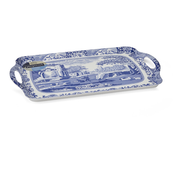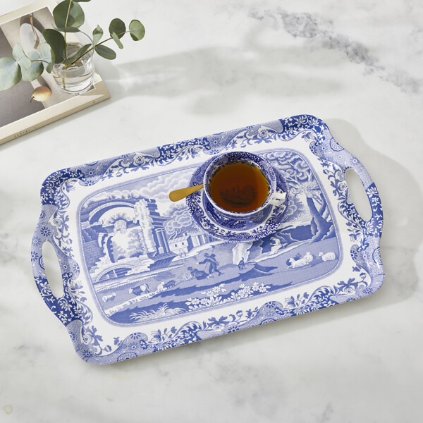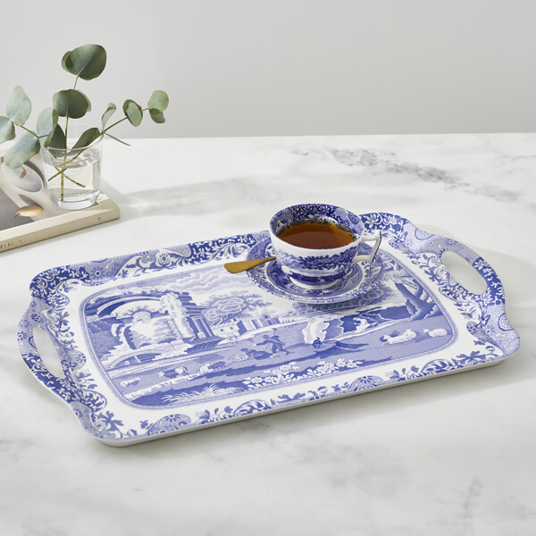 Blue Italian wurde bereits 1816 eingeführt und wird seitdem von Spode hergestellt. Es ist detailliert gestaltet und inspiriert von der alten italienischen Landschaft, umrahmt von einem Imari Oriental aus dem 18. Jahrhundert. Das Blue Italian Tablett mit Griffen kann mit einer Vielzahl anderer Artikel ergänzt werden, darunter Porzellan, Textilien und Tabletts aus der schönen und zeitlosen Blue Italian Kollektion.