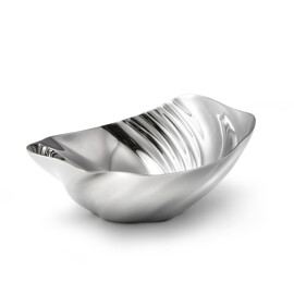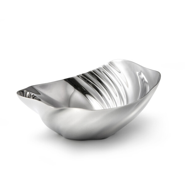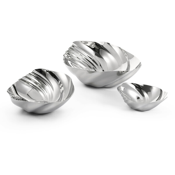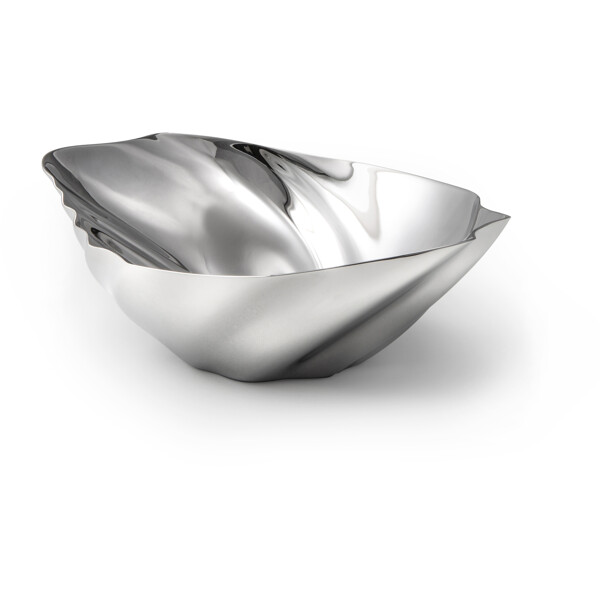 Die Robert Welch Cascade-Schalen sind von den Bewegungen der Natur inspiriert. Die fließende, skulpturale Form erinnert an die Wellenmuster von Wasserfällen, die vom Wind geformten Sanddünen oder große Muschelschalen. Die spiegelpolierte Oberfläche verstärkt den skulpturalen Ausdruck des Designs und lässt die Schalen auf einzigartige Weise Licht und Farben einfangen und reflektieren.