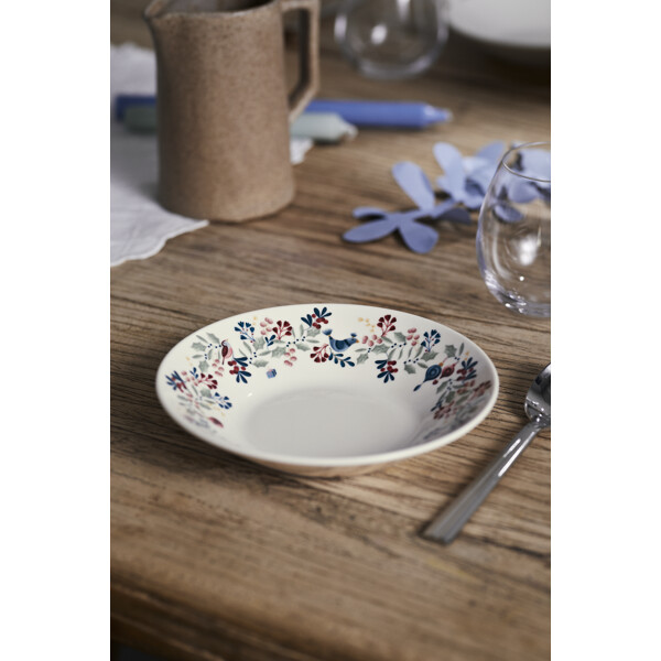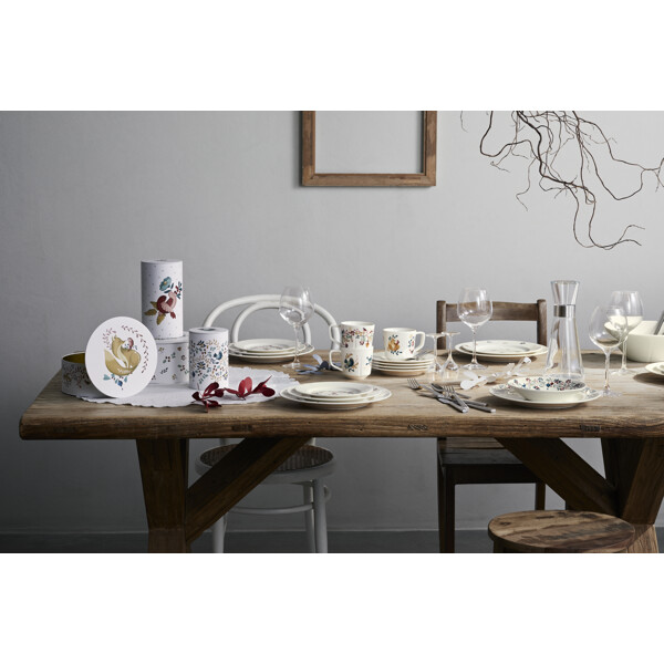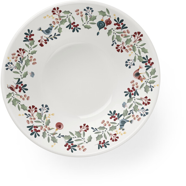 Moderne Nostalgie und Wärme für all die gemütlichen Momente in den kalten Monaten. Das ikonische weiße Grand Cru-Geschirr, ein minimalistischer Klassiker von Rosendahl, wurde für herbstliche Gemütlichkeit und Weihnachtsstimmung mit den maximalistischen Illustrationen der Norwegerin Fam Irvoll geschmückt. Auf kreative und spielerische Weise lässt sie sich von der Vergangenheit inspirieren und schafft mit der Grand Cru Cottage-Serie einen modernen und stimmungsvollen Ausdruck. Auf den Tellern, Schalen, Tassen und Vorratsdosen der Serie trifft die nordische Natur auf klassische Weihnachtsmotive und Vintage-Schmuck in einem herrlichen Zusammenspiel. Die Grand Cru Cottage-Schale misst 19 cm im Durchmesser und ist mit einer schönen Ranke dekoriert, die elegant den gesamten Rand umschließt. Sie kann selbstverständlich zum Servieren von Nüssen, Keksen und anderen Leckereien verwendet werden, aber auch für Frühstück, Milchreis oder Ris à la Malta an Heiligabend, wenn die Schale das i-Tüpfelchen auf dem Weihnachtstisch setzt und die Weihnachtsgemütlichkeit vollendet. Die Grundelemente von Grand Cru Cottage sind Blätter und Zweige, Beeren, Sanddorn, Vögel, Honigherzen, Glasdekorationen und Eicheln, die in einer einzigartigen Komposition auf jedem Teil des Geschirrs angeordnet sind. Grand Cru Cottage ist wie eine Familie, in der alle Familienmitglieder grafische Elemente innerhalb derselben Farbpalette enthalten, sodass jedes Teil einzigartig, aber dennoch harmonisch ist. Gemeinsam ist allen Motiven der Serie, dass der liebliche und nostalgische Ausdruck eine extra gemütliche Atmosphäre schafft, die das Geschirr zu Ihrem neuen Favoriten im Herbst und in der Weihnachtszeit macht – sowohl im Alltag als auch, wenn Gäste zu Besuch kommen.