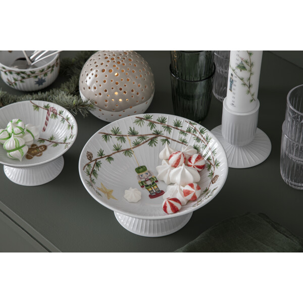 Hans-Christian Bauer und Rikke Jacobsen haben in diesem Jahr Hammershøi Jul entworfen. Dies ist eine klassische Serie von Kähler, die jedes Jahr die Möglichkeit bietet, viele verschiedene Häuser zu schmücken. Hier finden Sie eine Schale auf Fuß, die in die meisten Wohnungen passt und sowohl klassisch, stringent als auch superelegant ist. Diese Schale auf Fuß misst 16 cm und ist das kleinste von zwei Modellen in der Serie. Sie ist sehr nützlich auf dem Kaffeetisch oder bei den großen Familienmahlzeiten während der Weihnachtszeit. Das schöne Porzellan sollte von Hand gespült werden, damit die Dekoration so lange wie möglich hält, ohne Abnutzungserscheinungen zu zeigen.