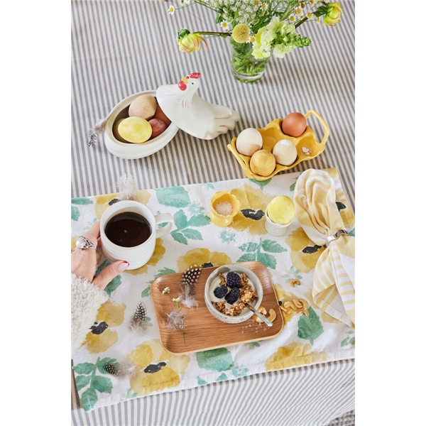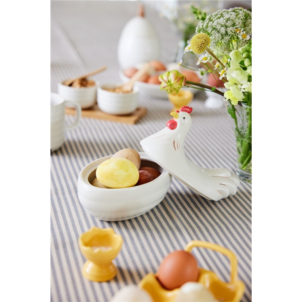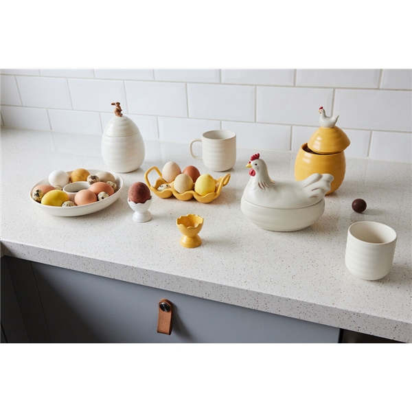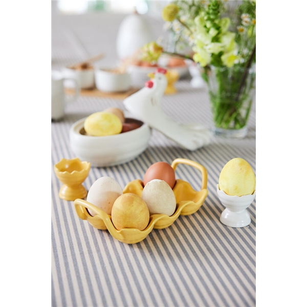Der Eierbecher Ellen ist perfekt sowohl für das Frühstück als auch für das Osteressen und passt hervorragend zu allen Teilen der Serie mit demselben Namen. Der Eierbecher hat eine passende Größe mit einem organischen Rand, der an die Schale eines Eis erinnert. Ellen ist aus Steingut gefertigt. Verkauft wird er im 2er-Pack in einer schönen Geschenkbox. Erhältlich in Elfenbeinweiß oder in einem warmen Gelbton. Die Eierbecher sind spülmaschinenfest für einfache Reinigung und Pflege. Die Serie eignet sich das ganze Jahr über, sowohl im Alltag als auch während unserer geliebten Feiertage und Traditionen.