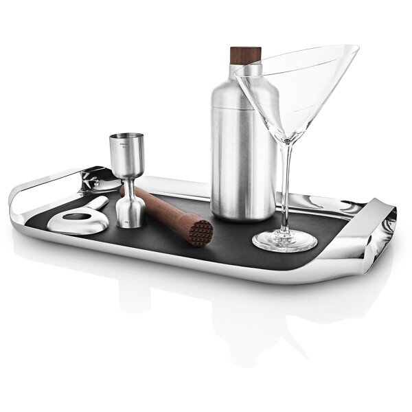 Das elegante Serviertablett macht jede Präsentation einladend, egal ob Sie Frühstück im Bett oder kalte Getränke auf der Terrasse servieren. Das Tablett erhält seinen klaren und glatten Ausdruck dadurch, dass es aus einem Stück Stahl ohne sichtbare Fugen gefertigt ist. Die tief platzierten Griffe erhöhen die Stabilität und das Gleichgewicht, selbst wenn das Tablett voll ist. Für zusätzliche Sicherheit können Sie eine rutschfeste Silikonmatte dazu kaufen. Mit seinem kompakten und flachen Design kann das Tablett einfach in den meisten Küchenschubladen verstaut werden. Neben seiner praktischen Funktion beim Servieren dient das Tablett auch als schönes Dekorationselement – perfekt zum Arrangieren von Ziergegenständen, Kerzenhaltern und Blumen. Es ist spülmaschinenfest.