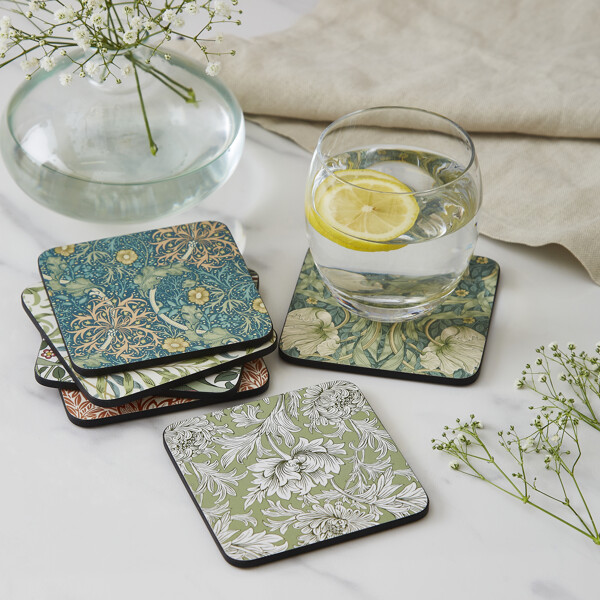 Diese Untersetzer von William Morris & Co kombinieren Praktikabilität mit zeitloser Schönheit, mit verschiedenen Mustern in jedem Set. Die Untersetzer haben eine Korkunterseite und sind hitzebeständig, was Ihre Oberflächen auf stilvolle Weise schützt. Die Untersetzer sind einfach mit einem feuchten Tuch zu reinigen. Eine elegante und funktionale Bereicherung für jedes Zuhause.
