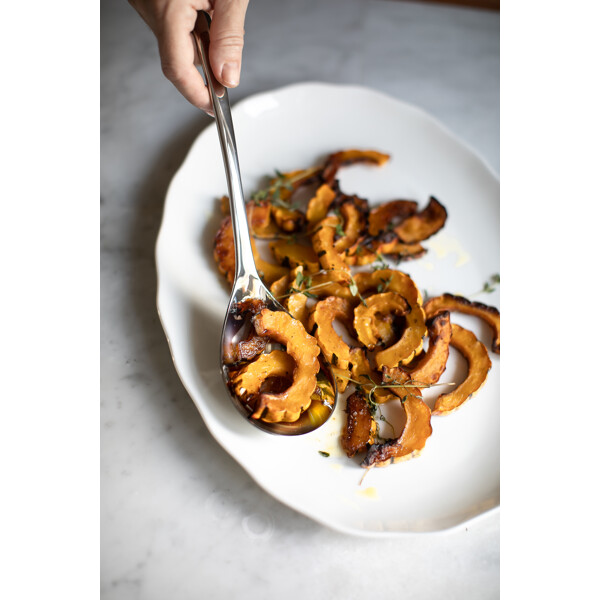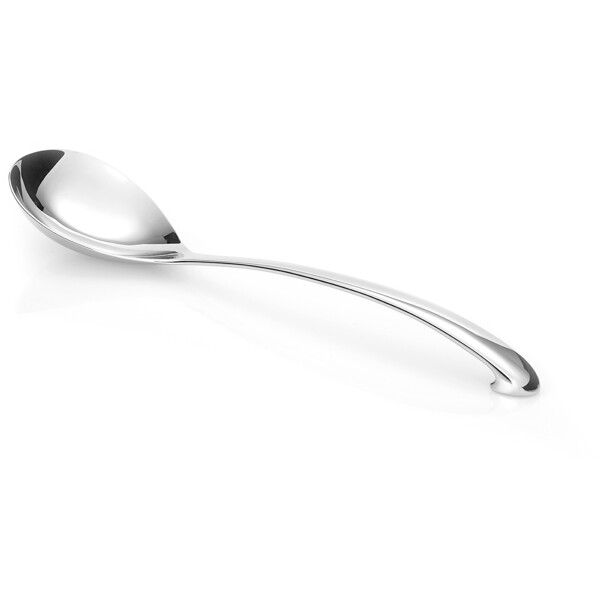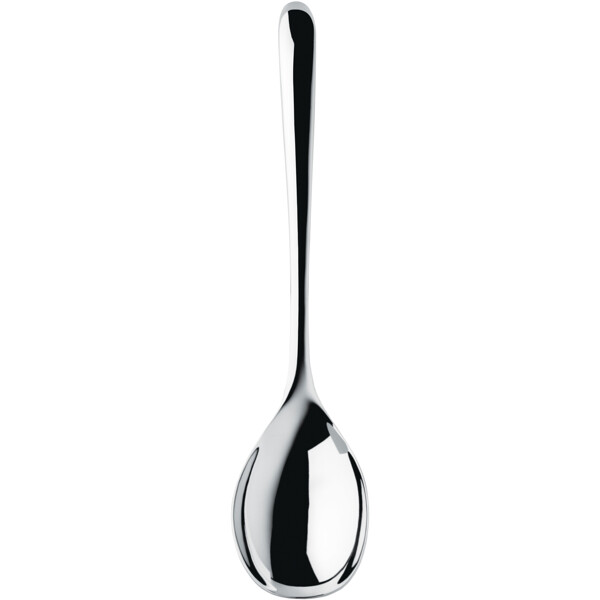 Robert Welch Signature Küchenutensilien sind aus 18/10 Edelstahl gefertigt. Die Utensilien haben einen ellipsenförmigen Griff, der einen bequemen Halt in der Hand bietet. Am Ende des Griffs befindet sich ein Haken, der es einfach und elegant macht, die Utensilien an einer Leiste aufzuhängen.