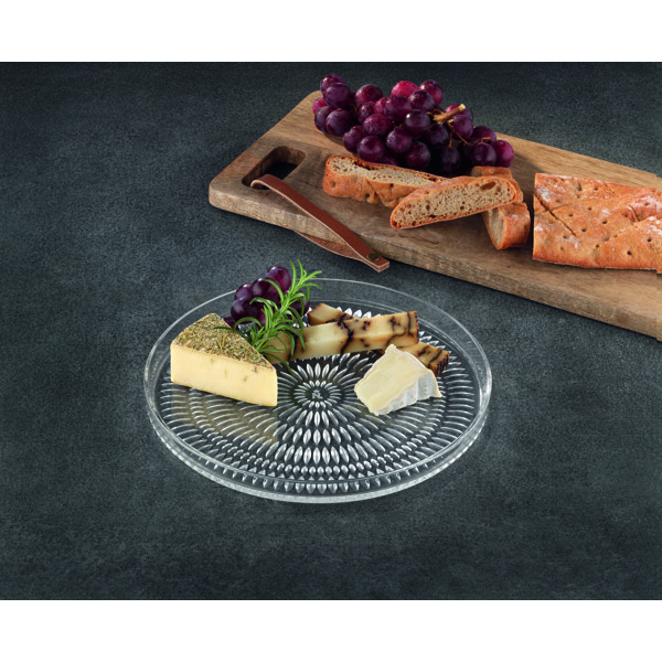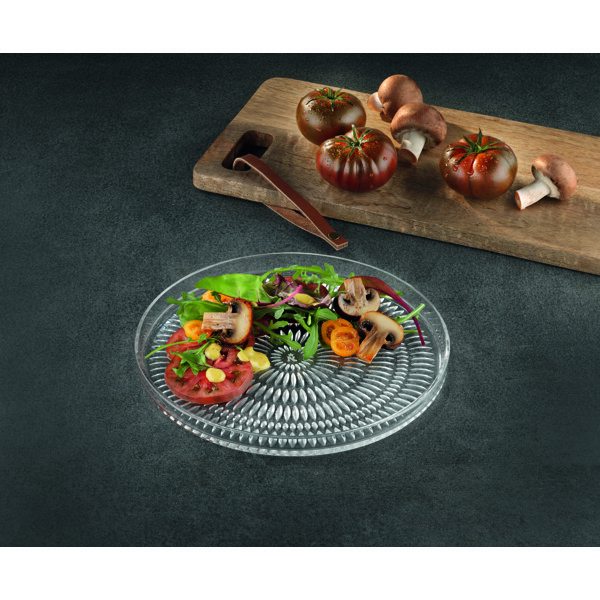 Das arabeskeninspirierte Muster verleiht eine dekorative Note, während die Klarheit des Kristalls das Licht auf wunderschöne Weise reflektiert. Ein vielseitiger und exklusiver Teller, der jede Servierung ein wenig spezieller macht.