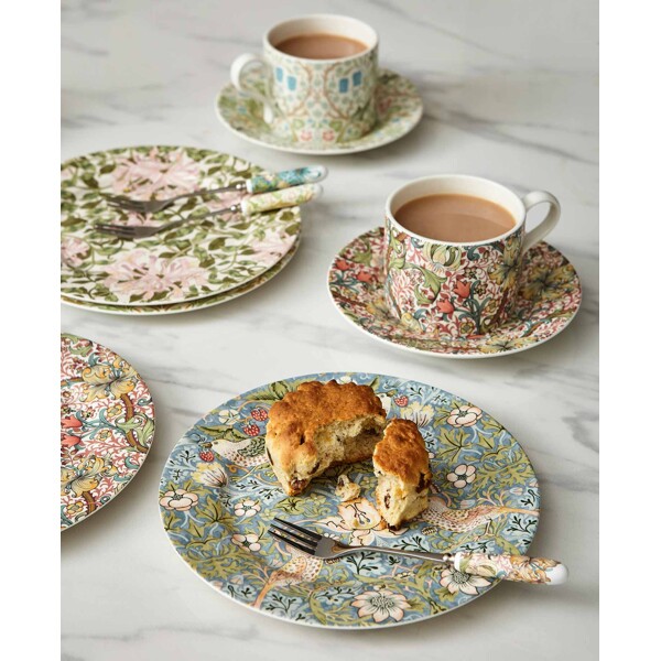 Dies ist eine Porzellanserie, die anlässlich des 160-jährigen Jubiläums von Morris & Co entwickelt wurde. Die fantastische Palette mit alten Mustern aus dem William Morris Archiv schafft eine wunderschöne Serie, die in die meisten Haushalte passt! Die enthaltenen Muster sind Strawberry Thief, Blackthorn, Golden Lily und Honeysuckle.