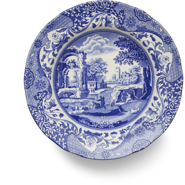 Detailreich mit Inspiration aus der alten italienischen Landschaft, umgeben von einem Rahmen aus einem Imari Oriental des 18. Jahrhunderts, das auch das weltberühmte Blue Italian kennzeichnet.
