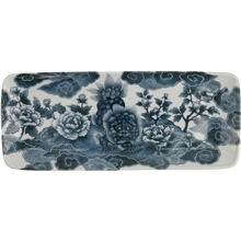 Japonism Tablett aus bemaltem Porzellan mit japanischen Motiven. Mit der Kollektion JAPONISM BLUE & BLACK können Sie mit einer Geschichte servieren. Diese anmutigen Wesen sind eine Anspielung auf asiatische Mythen, die Weisheit und übernatürliche Kräfte andeuten. Mikrowellen- und spülmaschinengeeignet.