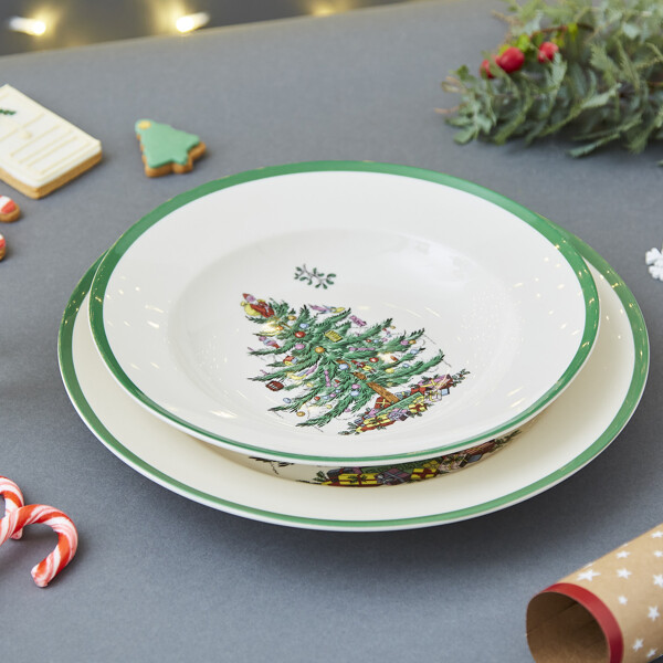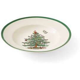Ein Tannenbaum voller Weihnachtskugeln und schön verpackter Geschenke sorgt für ein nostalgisches Weihnachten mit alten Traditionen, aber auch dafür, neue Erinnerungen zu schaffen. Christmas Tree von Spode ist genauso selbstverständlich zu Weihnachten wie Mistelzweig und Tannenbaum. Der Christmas Tree Suppenteller 23 cm ist spülmaschinenfest, ofen- und mikrowellengeeignet und zudem gefriersicher.