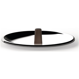 Deckel für Töpfe und Pfannen aus der Serie Edo von Alessi. Dank der einzigartigen Form des Deckels kann man während des Kochens einen Löffel oder eine Kelle darauf ablegen. Die Edo-Serie kombiniert einzigartiges Design mit verschiedenen funktionalen Details, die das Kochen verbessern. Die Serie wurde von Patricia Urquiola entworfen, die verschiedene kulturelle Einflüsse mit formalen Elementen mischt.
