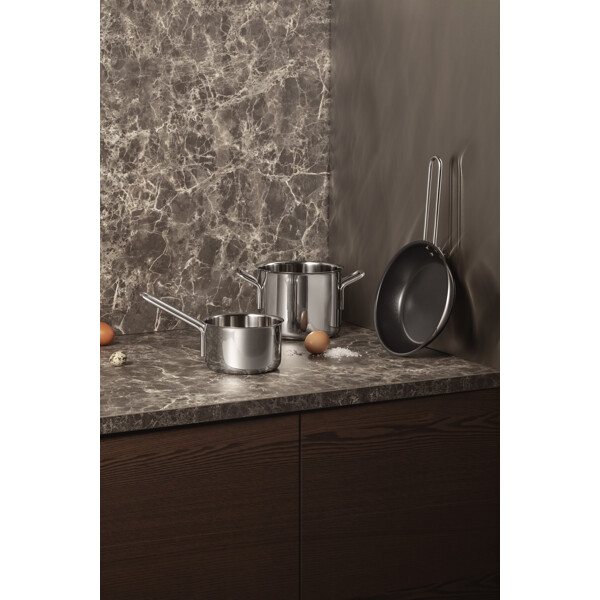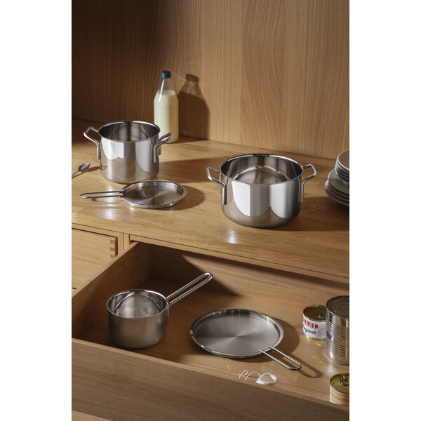 Jede Küche verdient einen langlebigen Kochtopf aus rostfreiem Stahl. Das robuste Material hält dem täglichen Gebrauch stand, während der verkapselte Sandwichboden eine gleichmäßige Wärmeverteilung gewährleistet. Daher ist der Kochtopf die naheliegende Wahl, wenn Sie Pasta, Reis kochen oder Saucen und Suppen zubereiten möchten. Der Korpus des Kochtopfs besteht zu 90 Prozent aus recyceltem rostfreiem Stahl und das Design basiert auf dem klassischen Ole Palsby/Eva Trio-Design von 1977, was die Kompatibilität mit vorhandenen Eva Trio-Deckeln sicherstellt. Der Kochtopf funktioniert auf allen Arten von Wärmequellen und ist spülmaschinenfest.