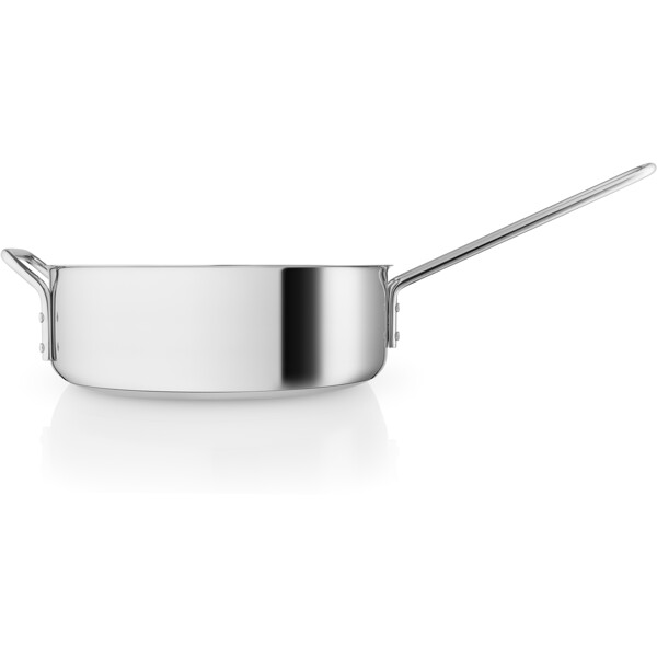 Die Schmorpfanne bietet Ihnen eine Vielzahl von Möglichkeiten: Sie können braten, schmoren, sautieren und sogar Saucen und Eintöpfe zubereiten. Die hohen, geraden Ränder sorgen dafür, dass auch flüssigkeitsreiche Speisen dort bleiben, wo sie hingehören – selbst bei schnellem Umrühren. Der Korpus der Schmorpfanne besteht zu 90 Prozent aus recyceltem Edelstahl. Die Innenseite der Schmorpfanne ist mit einer keramischen Slip-Let®-Beschichtung versehen, die effektiv verhindert, dass Speisen haften bleiben oder anbrennen, was sowohl das Kochen als auch die Reinigung erleichtert. Die Schmorpfanne hält Temperaturen bis zu 400 °C stand, ist kratzfest und funktioniert auf allen Wärmequellen. Sie ist auch spülmaschinenfest.