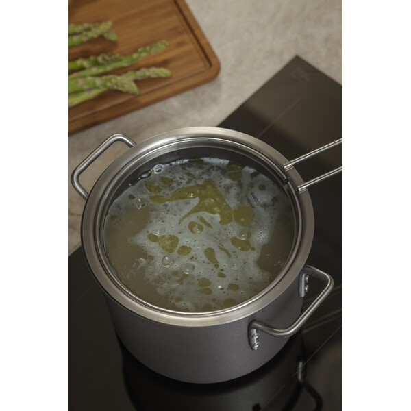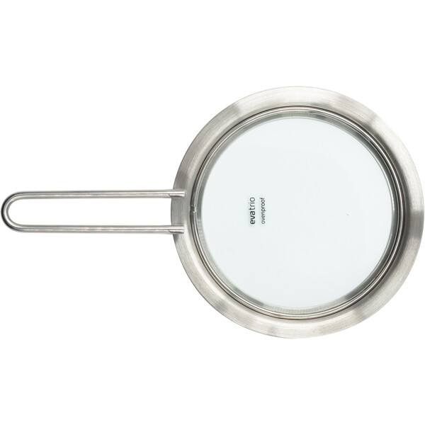 Topfdeckel aus Edelstahl und Glas von Eva Trio, der es ermöglicht, das Essen im Topf/Kochtopf im Blick zu behalten. Der Topfdeckel hat einen langen Griff an der Seite, damit man sich nicht verbrennt, wenn man das Essen überprüft. Dank des Glasdeckels kann man den Kochvorgang jederzeit beobachten und verfolgen. Alle Deckel passen zu allen Eva Trio-Topfserien und Materialien.