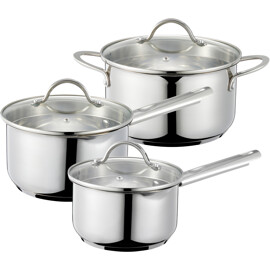 Das Kosmo Kochtopfset in drei Teilen hilft Ihnen, alles von gekochten Kartoffeln bis hin zu Saucen erfolgreich zuzubereiten. Die schön gestalteten Töpfe sind in drei verschiedenen Größen erhältlich.