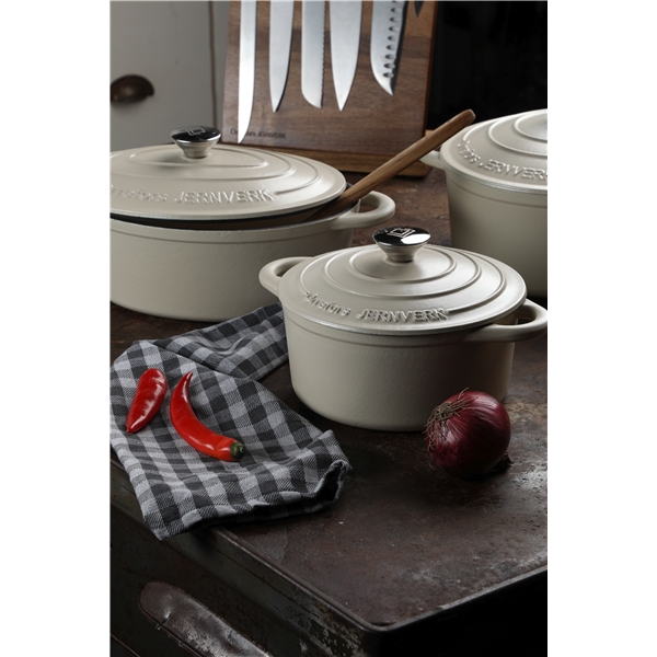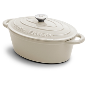 Ein etwas größerer emaillierter Gusseisentopf in ovaler Form. Ein solider Topf, perfekt sowohl für Schmorgerichte als auch für Alltagsgerichte. Erhältlich in mehreren Farben.