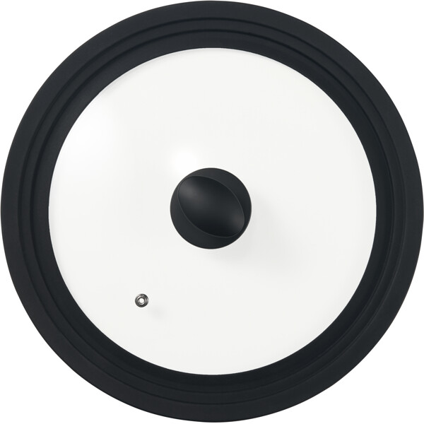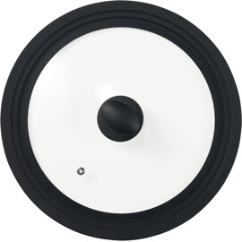 Praktischer Deckel für Pfannen in drei verschiedenen Größen. Der Una Universaldeckel mit schwarzem Silikonrand verhindert, dass die Soße in der Pfanne überkocht.
