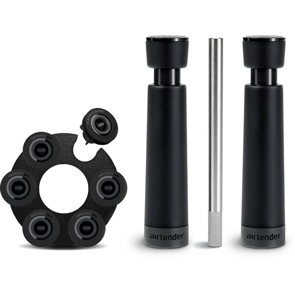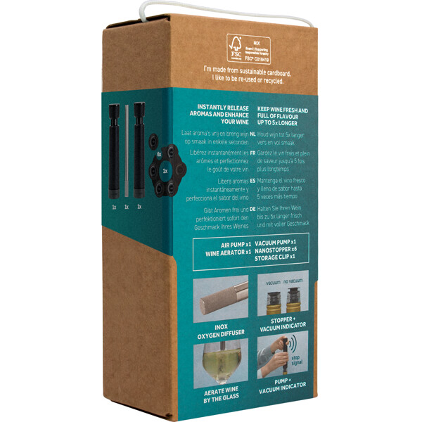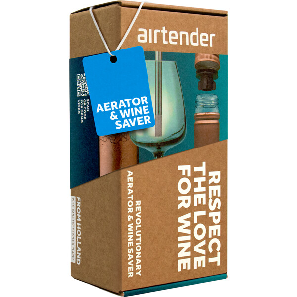 Mit diesem Set in einer schönen umweltfreundlichen Kartonverpackung holen Sie sich das komplette Weinkit von Airtender in Ihr Zuhause!